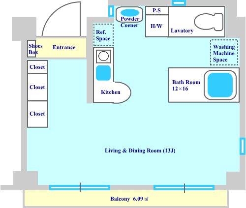 #341 4F 南東角部屋 studio(38.68u) |