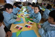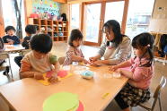 | お別れ会食の準備をしよう。年長児がカレーを作っています。 |