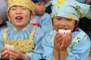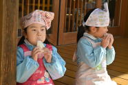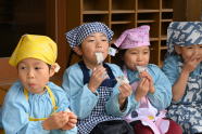 年長は三宝を作っています |