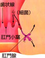 肛門出口の肛門小窩から菌が侵入 |