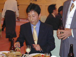 愛媛県たばこ耕作組合の「原 会計主任総務部長」。 安井部長さんが、「カメラ!カメラ!」と言われるんで、、、 思わずパチリ!! それにしても、歌がお上手ですね。。。(^_^;) |