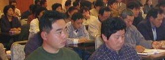 体験発表会場風景です。 みなさん、熱心でなごやかでいい雰囲気でした.....(~.~~) |