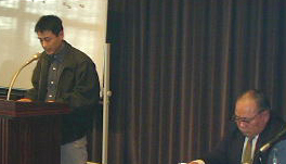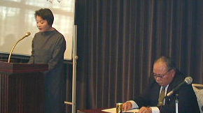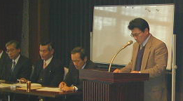 体験発表会場風景です。 手前は、左から...野村町葉たばこ青年部長(兵頭 、啓二君)、 同じく副部長(兵頭 泰明君)です。 |