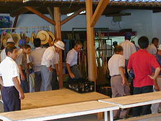 西条市「産直組合」の視察風景です。 左側のカバンを持ってるのが、会計の「井関 徹君」です。 |