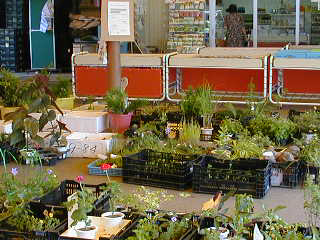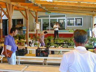 西条市「産直組合」の視察風景です。 台風11号の影響で、野菜は品薄でした。 |