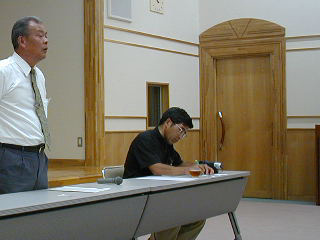 西条市地方局での研修風景です。 西条地方局の「別宮所長」の挨拶です。 ( 右側は、私です。) |