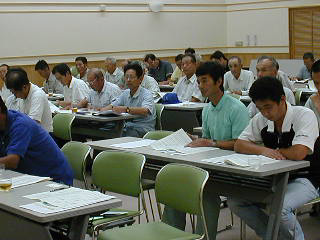 西条市地方局での研修風景です。 西条市飯盛地区の「受委託作業」の説明に、みんな熱心に耳を傾けておられました。 |