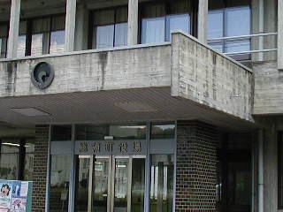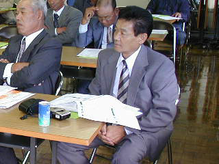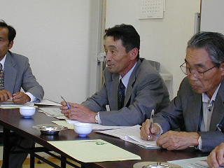 総領町役場での研修風景です。(12日) 右は岡沢局長、左は井関会長です。 |
