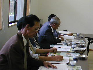 岡山県賀陽町農業公社での研修風景です。(11日) 手前は兵頭委員、中央は「井関会長」です。 |