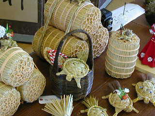 「農産物品評会」の会場です。 「ミニ米俵」です。 これを作るのは根気が要りそうですね(-.-;)y-゜゜ |