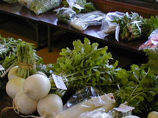 「農産物品評会」の会場です。 丸い「ダイコン」...美味しそうですね。。。σ(^^) |