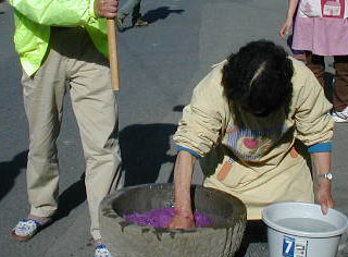 「もち」搗きです。 この「紫芋もち」が美味しいんですよね。。。∈^0^∋ |