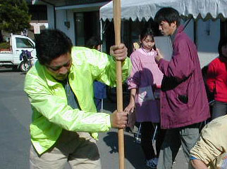 「もち」搗きです。 ...後ろの右側は普及所の「清家さん」。。。この後、、、 青色申告会の「税務懇談会」の打ち合わせをしました。 |