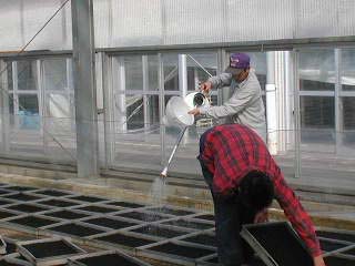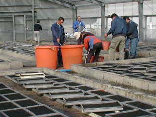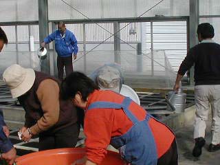 平成16年2月1日の「野村町たばこ部会」で「種まき」の様子です。 今年は、愛媛県たばこ耕作組合の「堀尾参事さん」と「稲田部長さん」が、 応援に駆けつけて頂きました。どうも、ありがとうございました。。。!! |