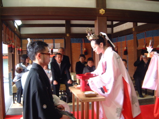 三三九度の杯です。 花婿も、流石 この時は緊張気味でした。。。^^; |