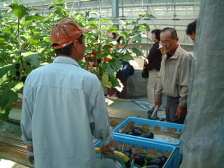 「四万十あぐりっこ研修センター」にて、、、 新規就農者研修施設では、「米ナス」の 栽培体験がなされておりました。 |
