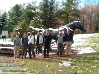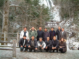 大雪山国立公園(銀河の滝)で記念撮影です。 (前列左から2番目が私です。) |
