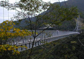 「綾の照葉大吊り橋」です。 長さ250m、高さ142mの大吊り橋...綾川渓谷の照葉樹林の 中に上手くマッチし、気品すら漂わせておりました。 |