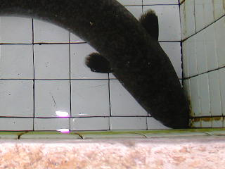 「池田湖」湖畔にあるボート屋さんで飼育されてる「日本一の 大ウナギ」です。 蒲焼きにして、食べて見たいですね。。。(^_^;) |